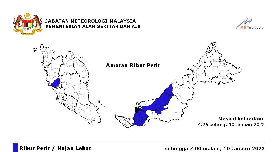 Demikian kenyataan yang dikeluarkan Jabatan Meteorologi Malaysia Met Malaysia menerusi laman facebooknya.